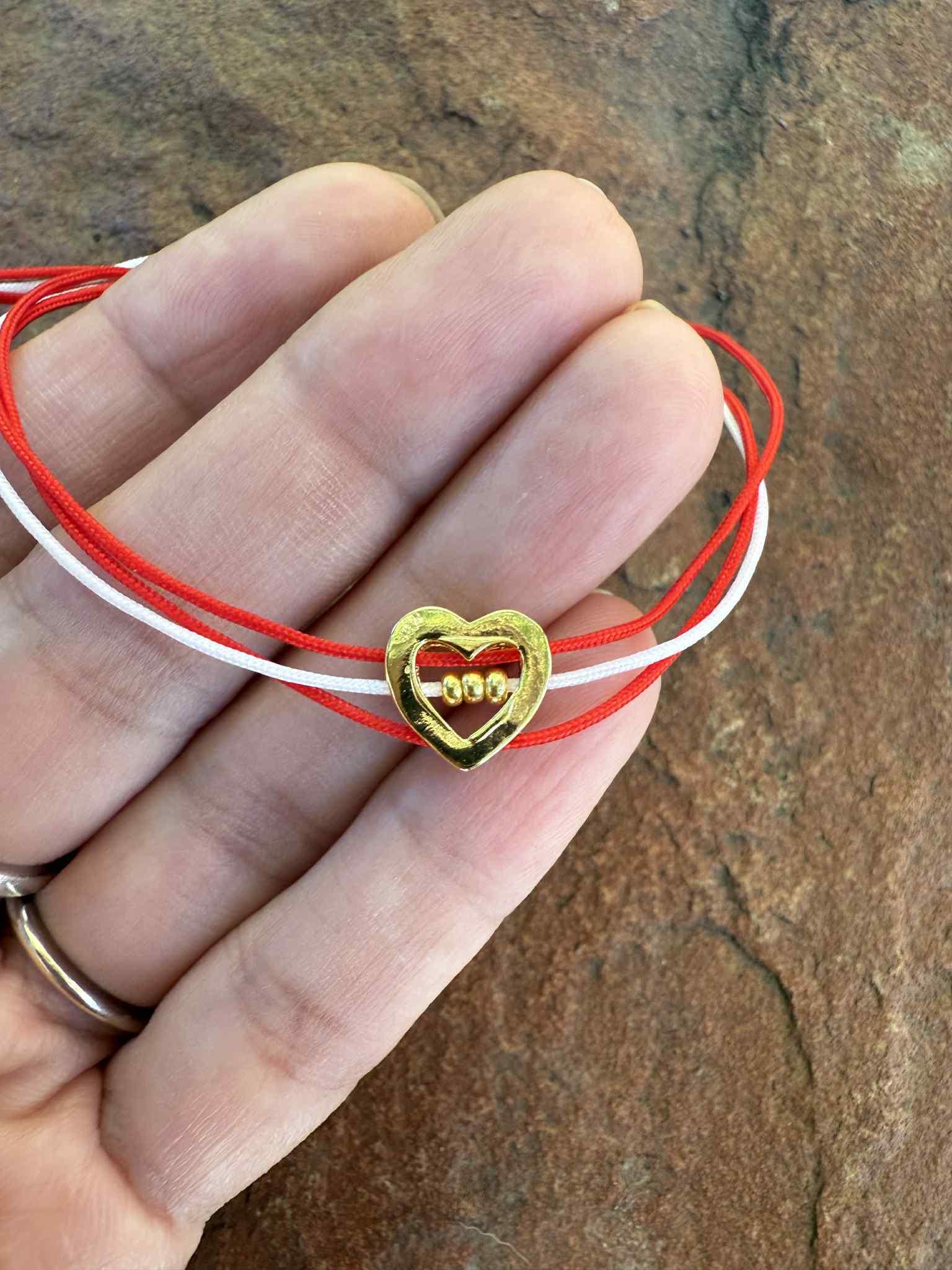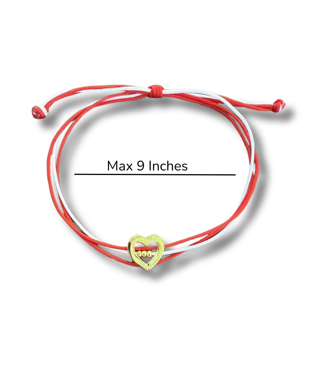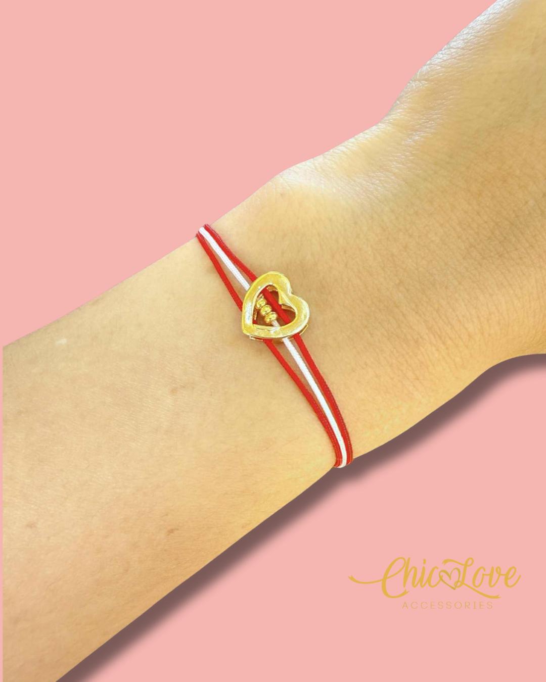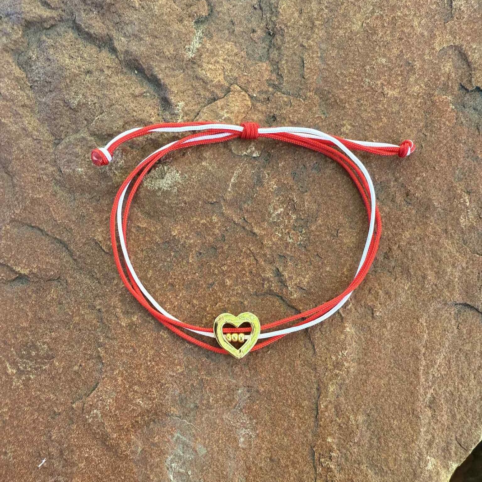 This bracelet from Chic Love Accessories is handmade with a red nylon cord and a heart charm crafted in brass with an 18K gold plating.