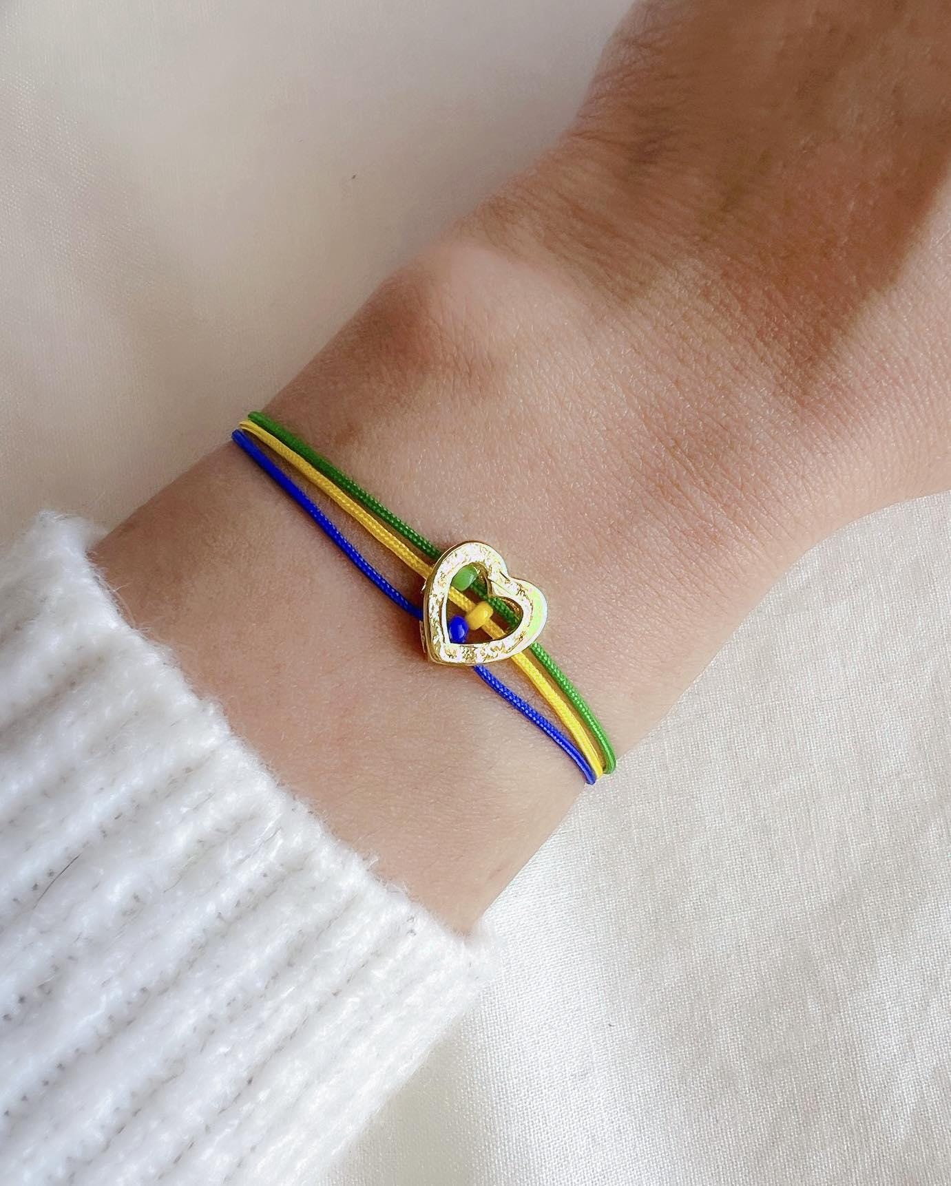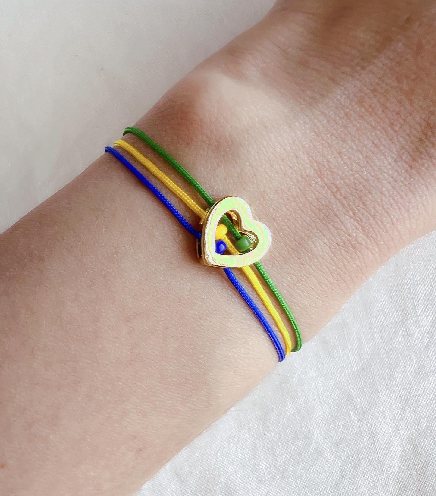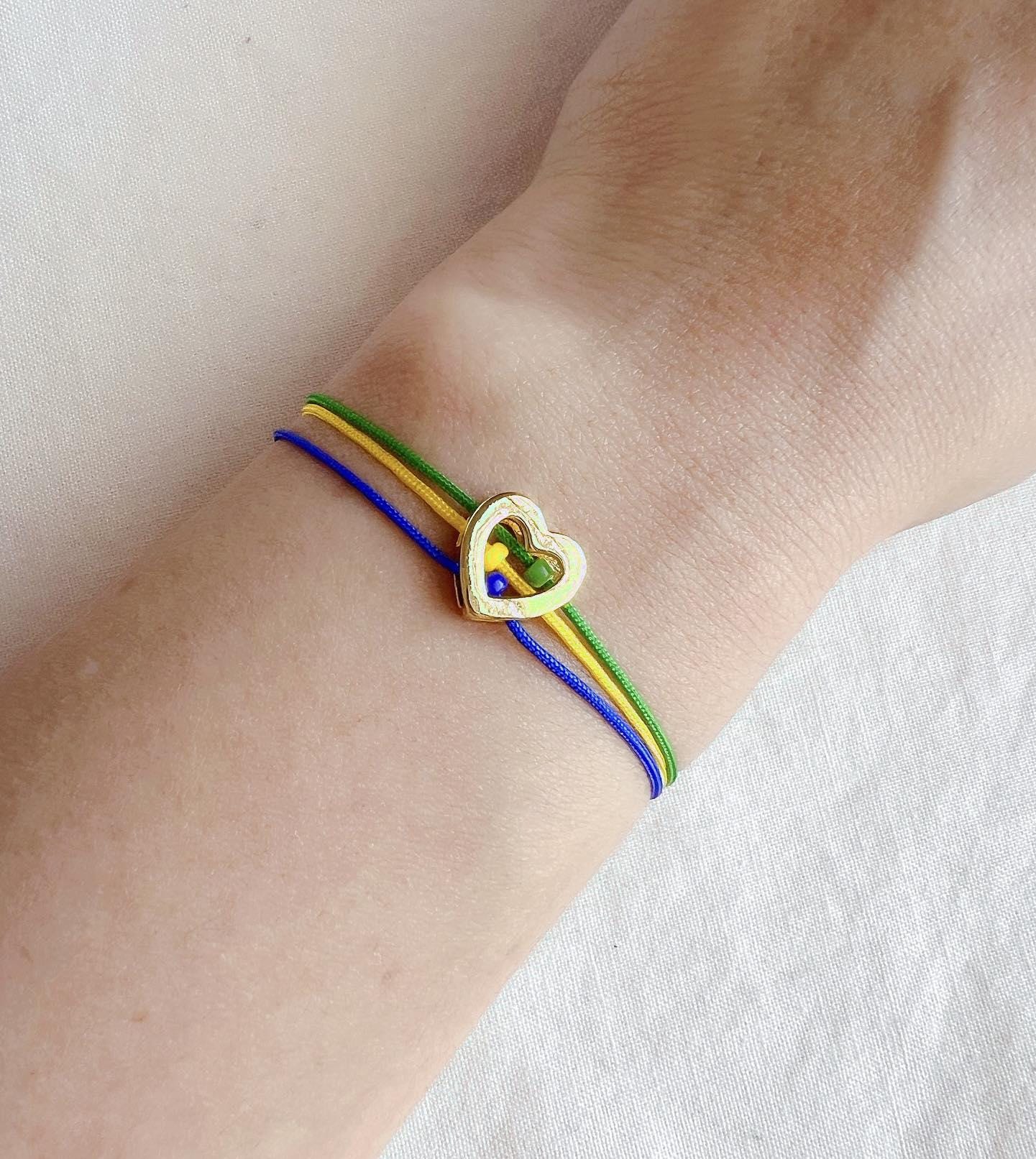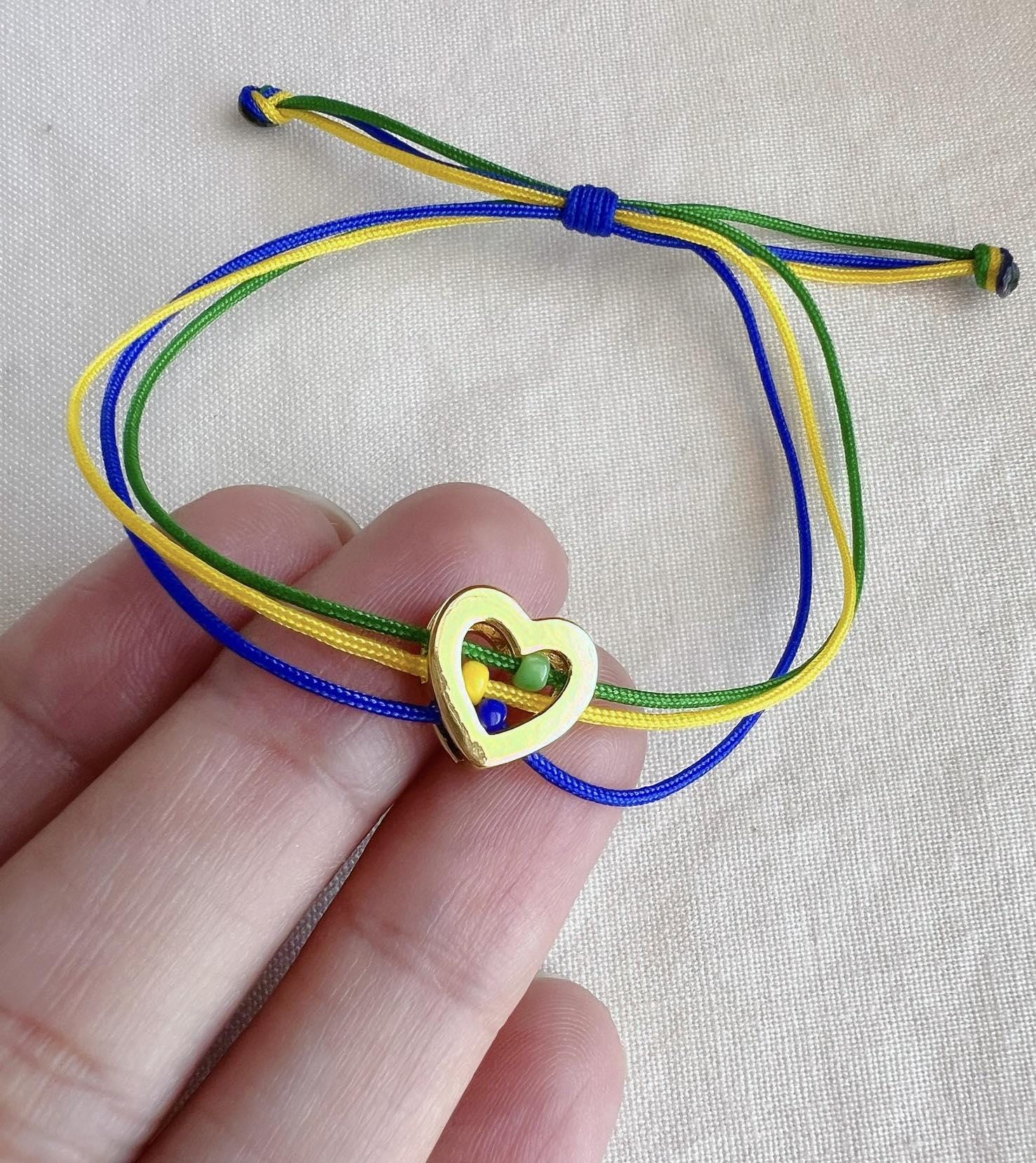 Handmade with durable nylon cords and finished with a delicate 18K gold-plated brass heart. The bracelet adjusts comfortably up to 9 inches, making it perfect for most wrist sizes.