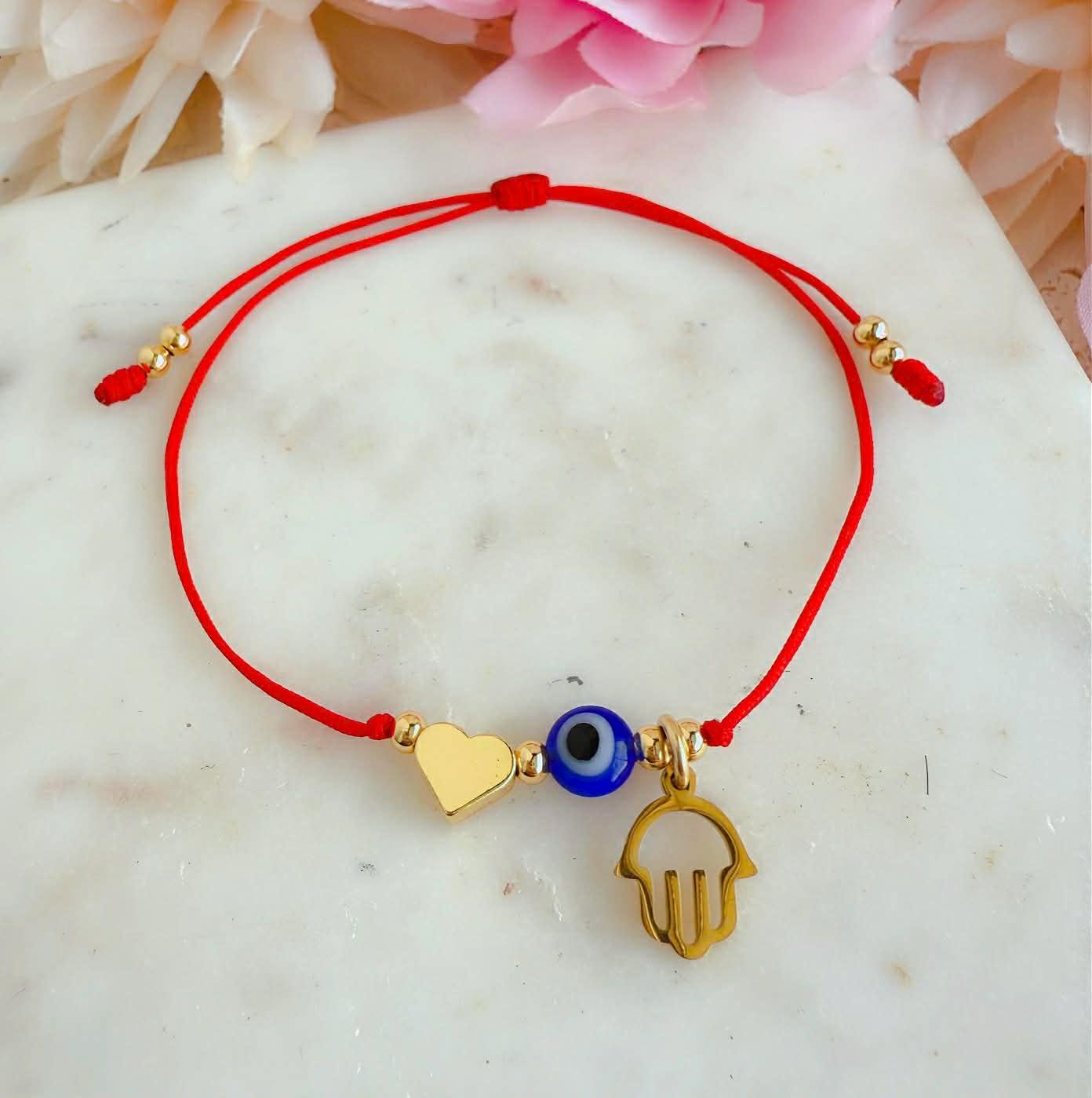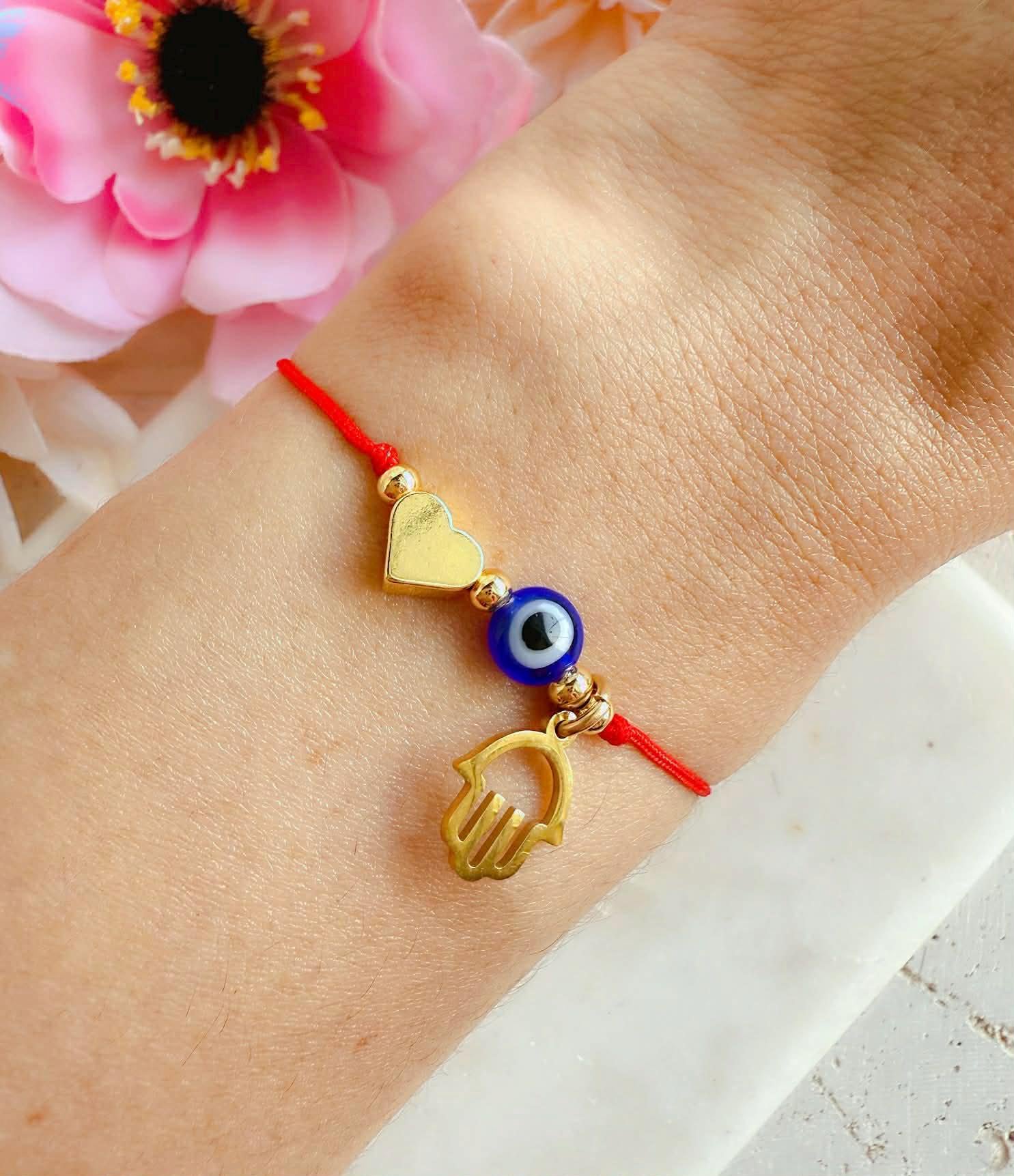 Heart and Blue Eye Charms: Adds a special touch to the bracelet.