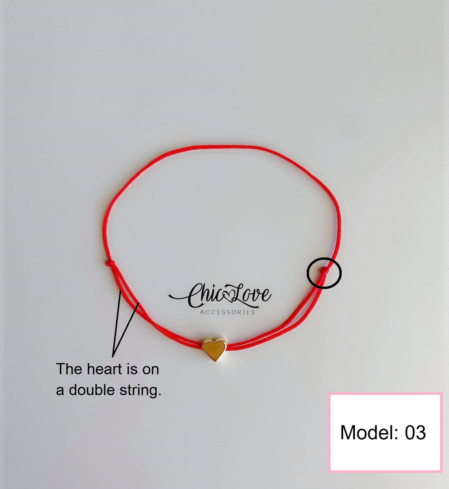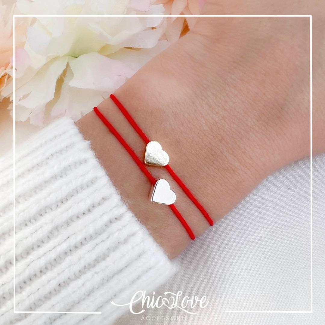 Each bracelet features a vibrant red nylon cord, adjustable for a comfortable fit, adorned with a delicate heart charm. Wearing these matching bracelets serves as a daily reminder of your connection, love, and mutual protection.